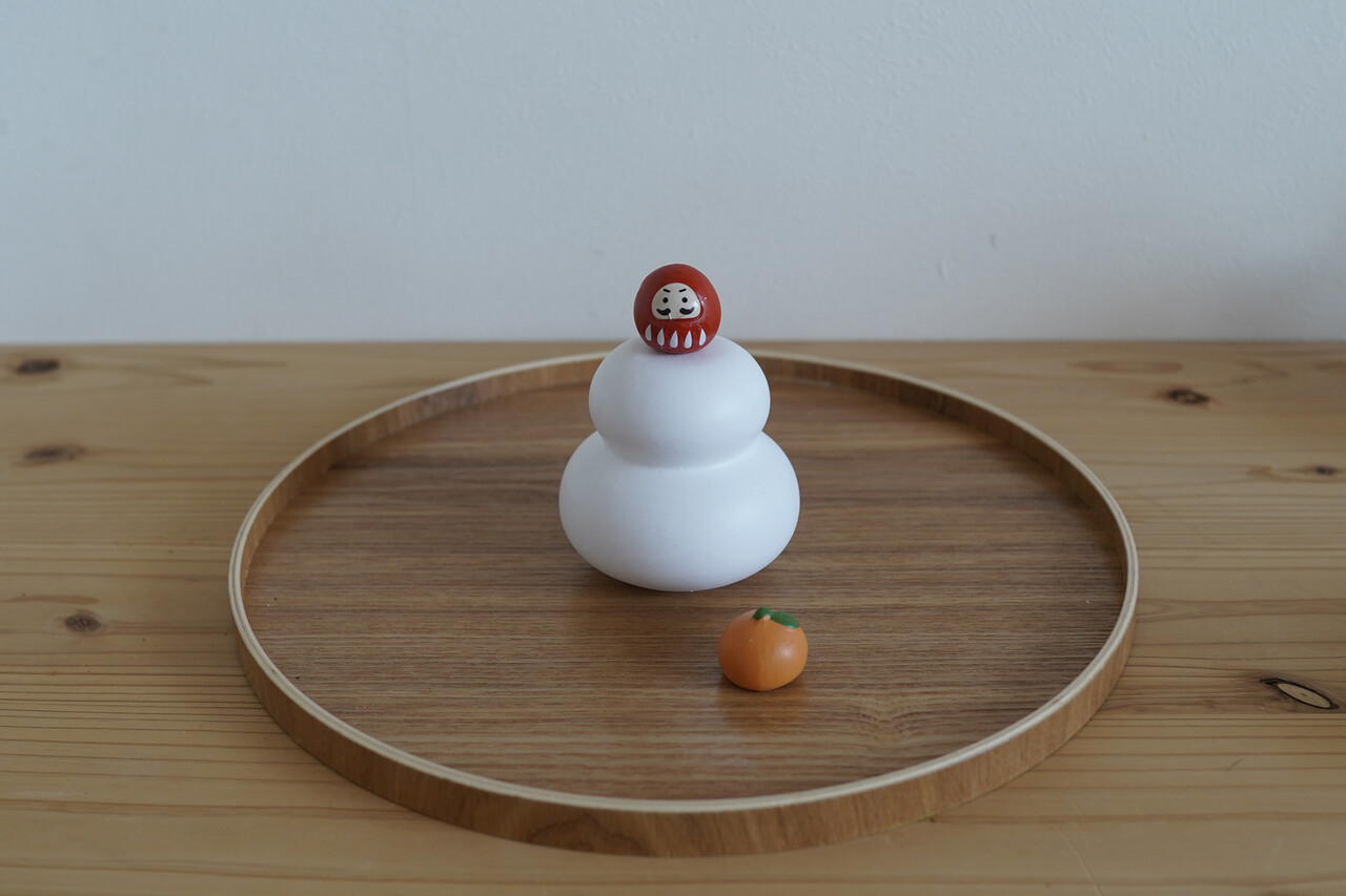 こちらは「」で購入した陶器の鏡餅オブジェ だるま付き。(税込330円)