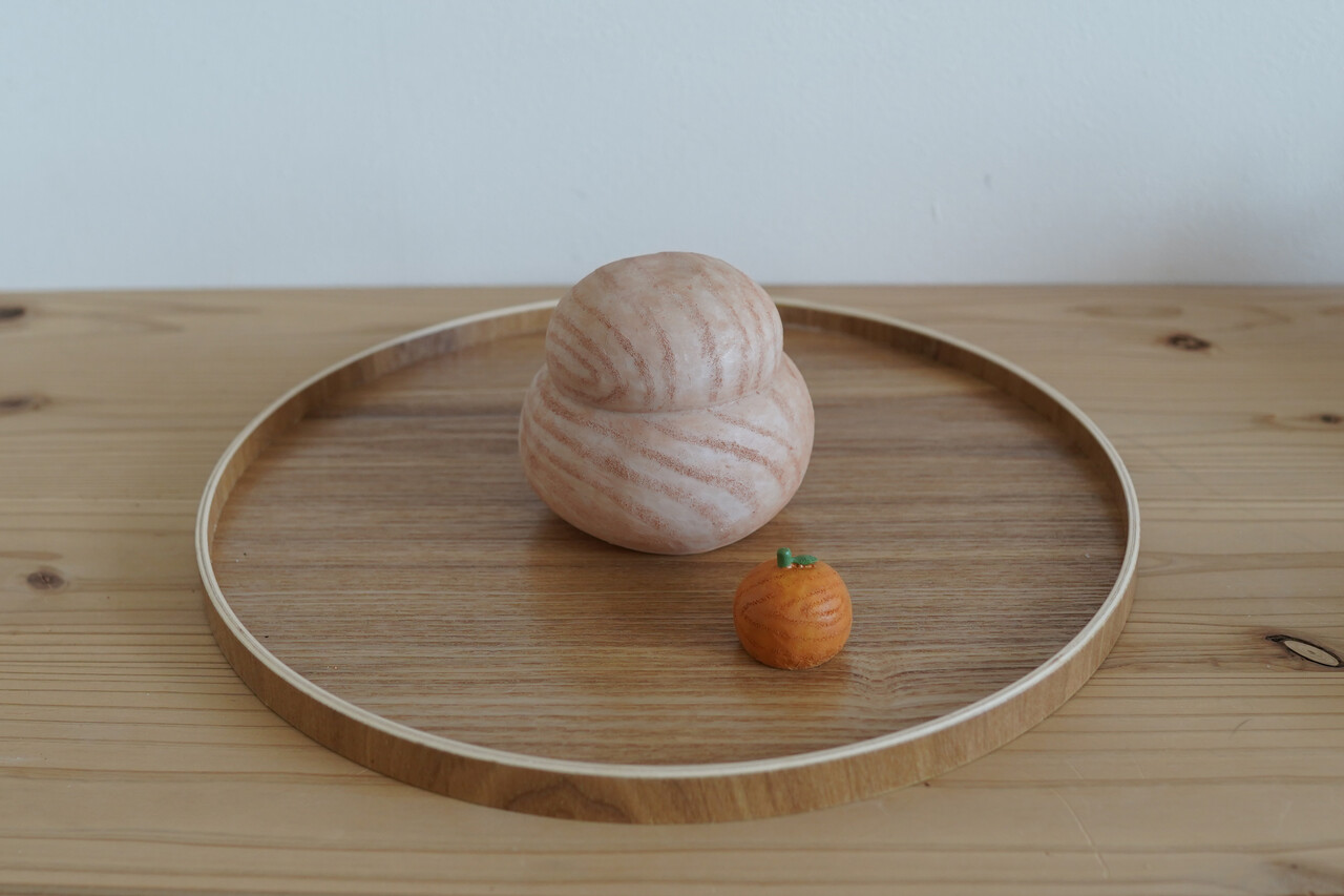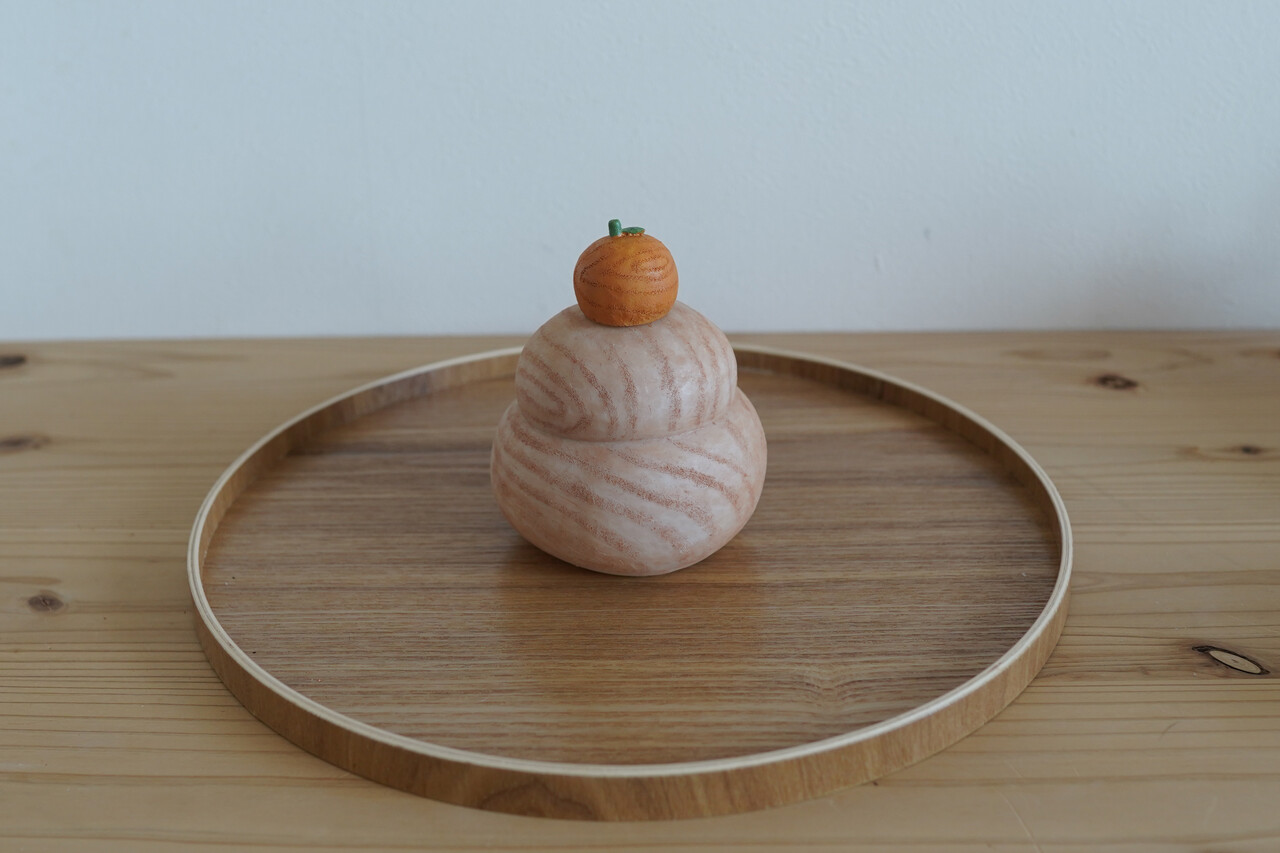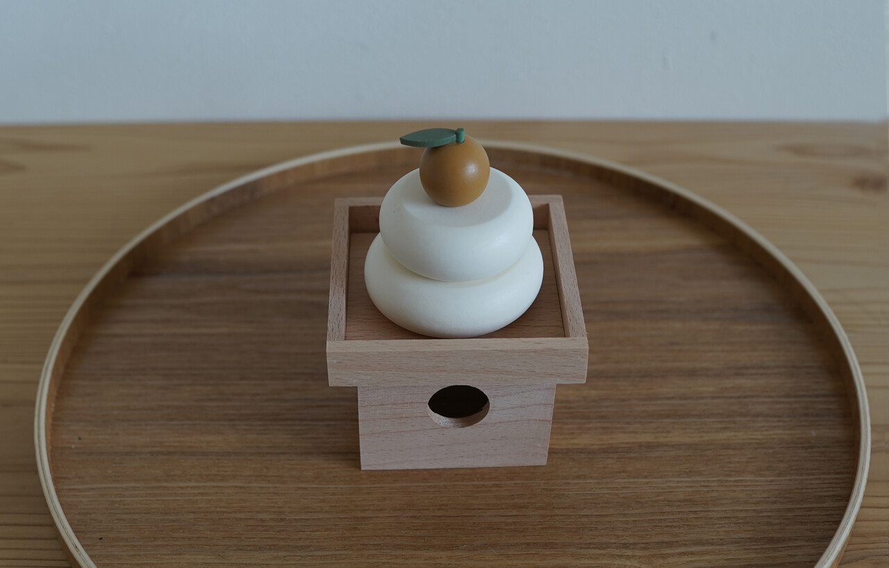同じく「セリア」で購入した木製の鏡餅。(税込110円)