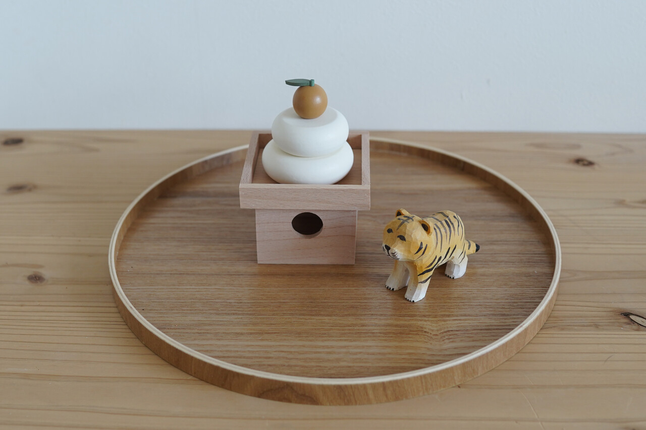 鏡餅と一緒に購入したのは、干支の“木彫りとらオブジェ”(税込550円)