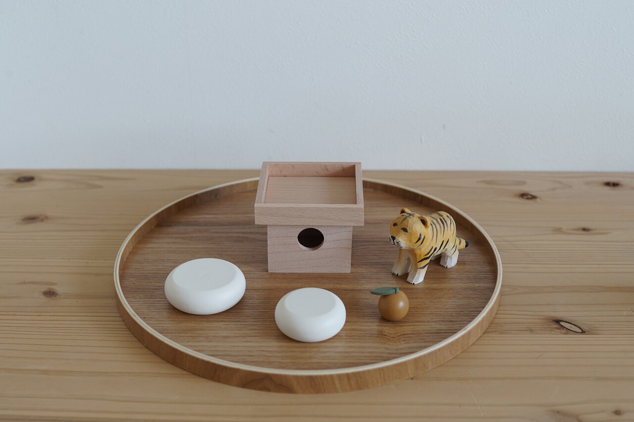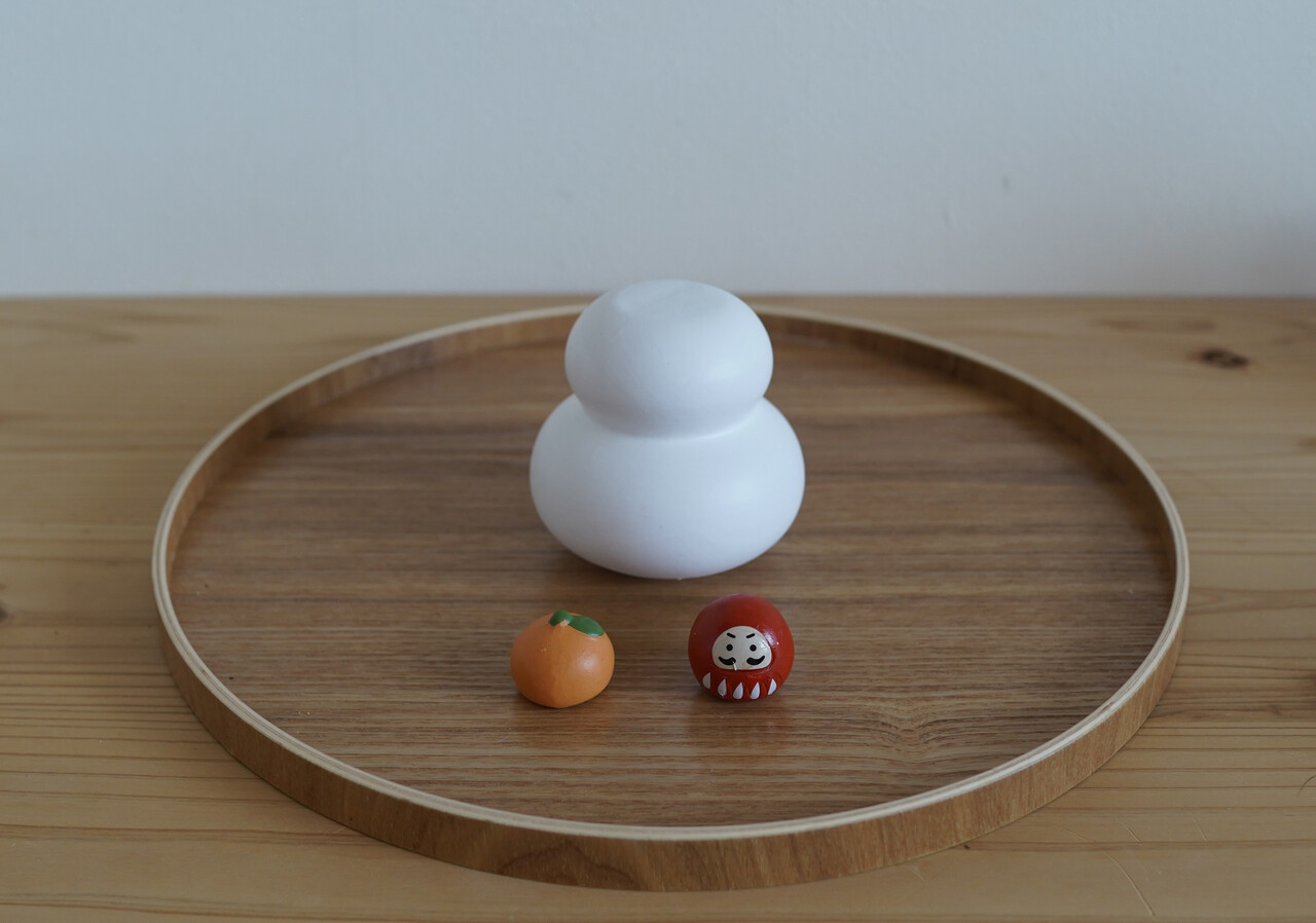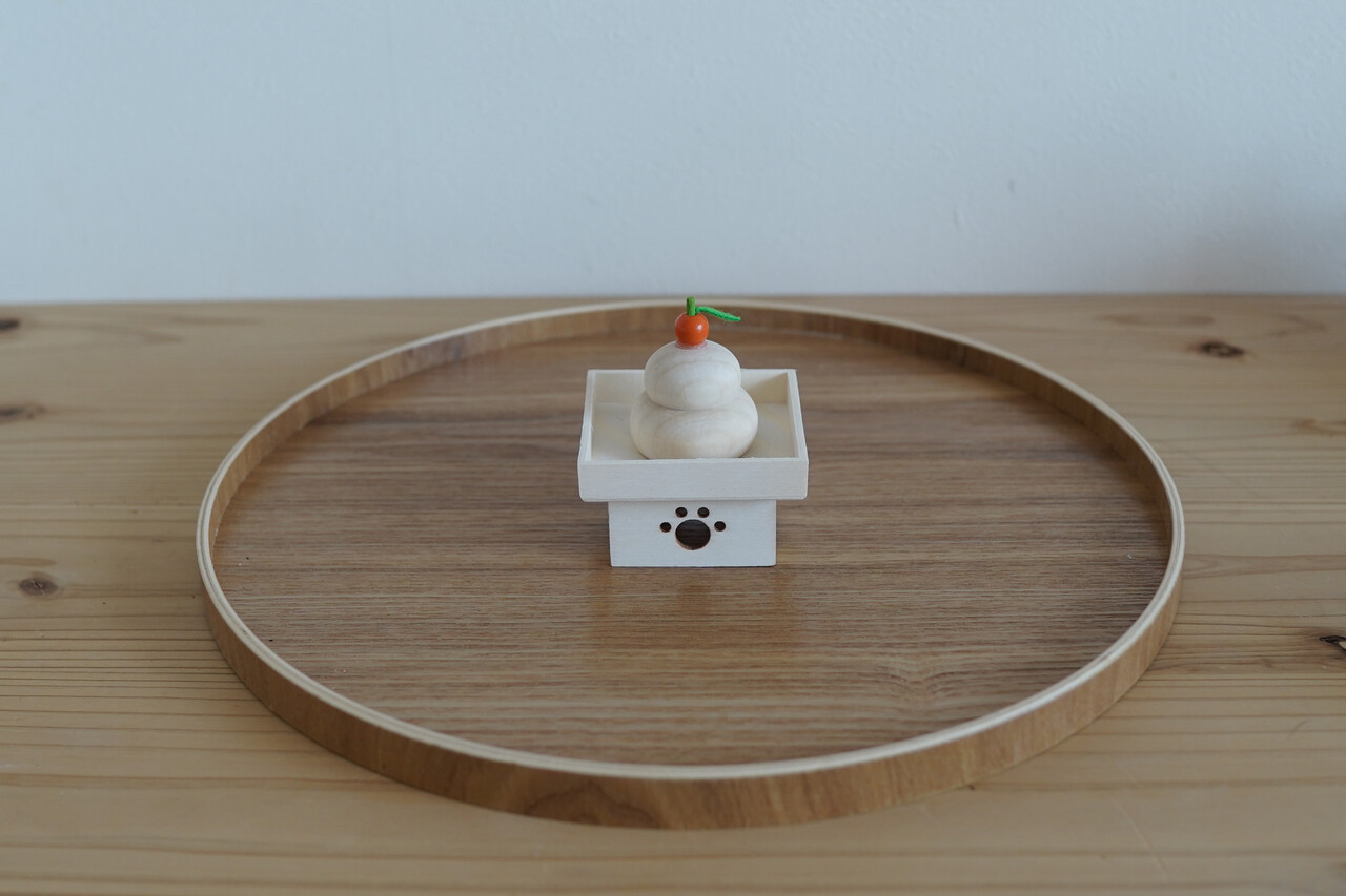鏡餅をナチュラルキッチンの木製足つきトレーに乗せてみたり( ̄∀ ̄)♪